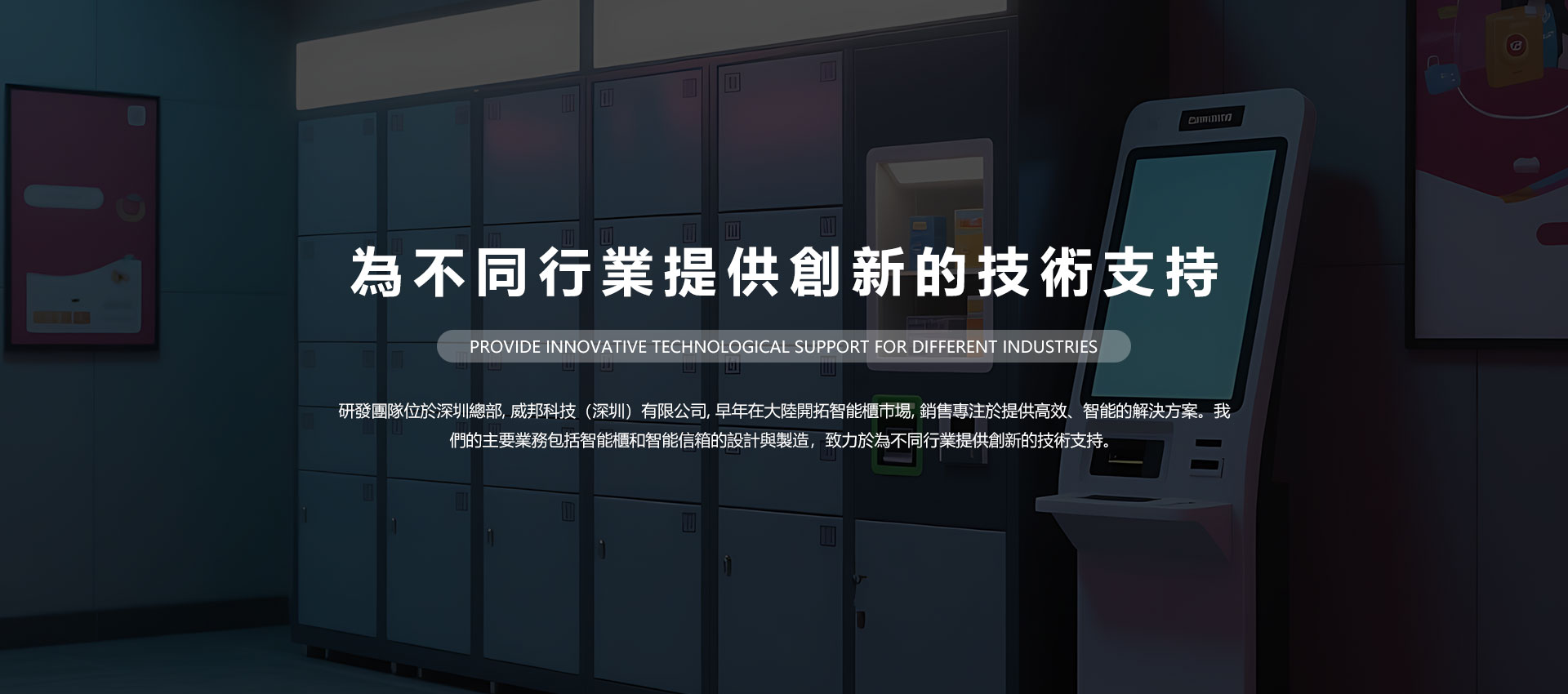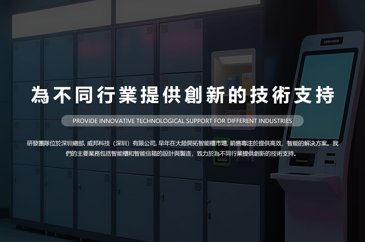 研發團隊位於深圳總部, 威邦科技(深圳)有限公司, 早年在大陸開拓智能櫃巿埸, 銷售專注於提供高效、智能的解決方案。我們的主要業務包括智能櫃和智能信箱的設計與製造,致力於為不同行業提供創新的技術支持。由2024年我們公司開始將智能應用市場拓展到香港, 開始改變企業及客戶的應用習慣。到現階段伸延到社區應用,如簡約公屋,東華三院的租借櫃。